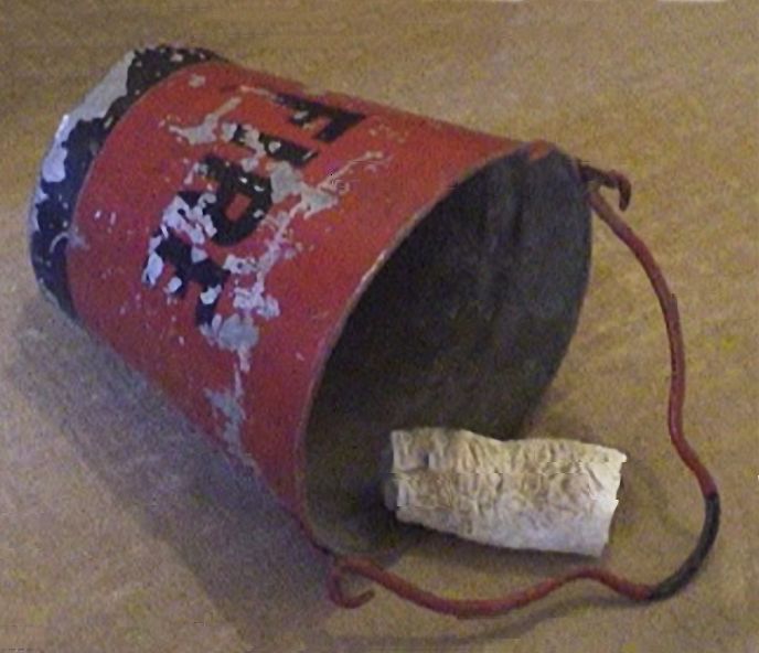 Listen to the 90 year old recording Download these images for your use.We present a series of photos including the fire bucket in which the cylinder was found, and a picture of the cylinder itself.